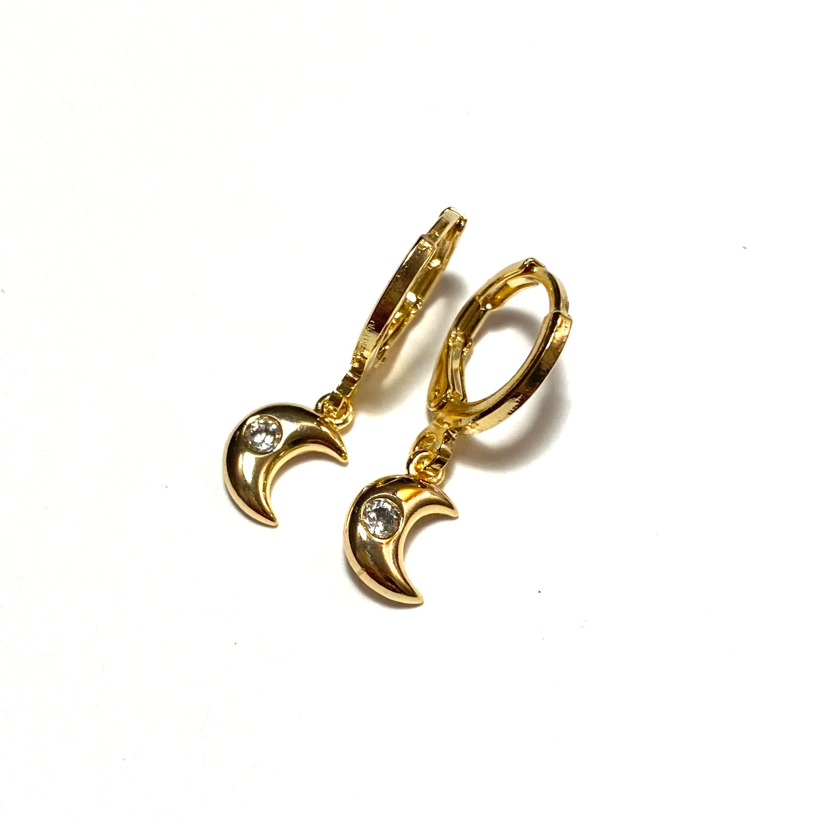 Ørepynt med rhinstensatte måner. 18K gullbelagte øreringer.