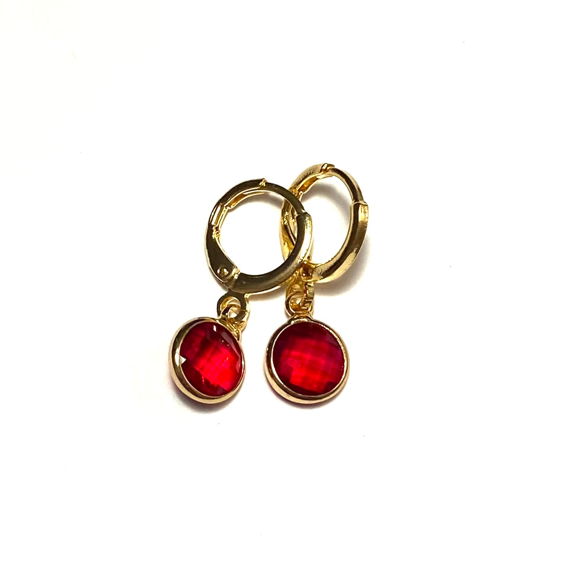 Øreringer med røde anheng. 18K gullbelagte øreringer.