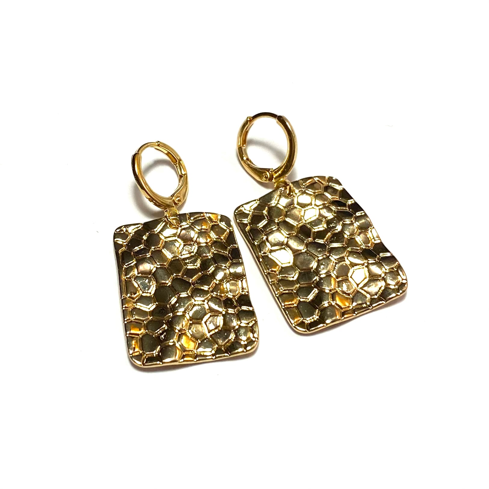 Ørepynt i gullfarget metall. 18K gullbelagte øreringer.