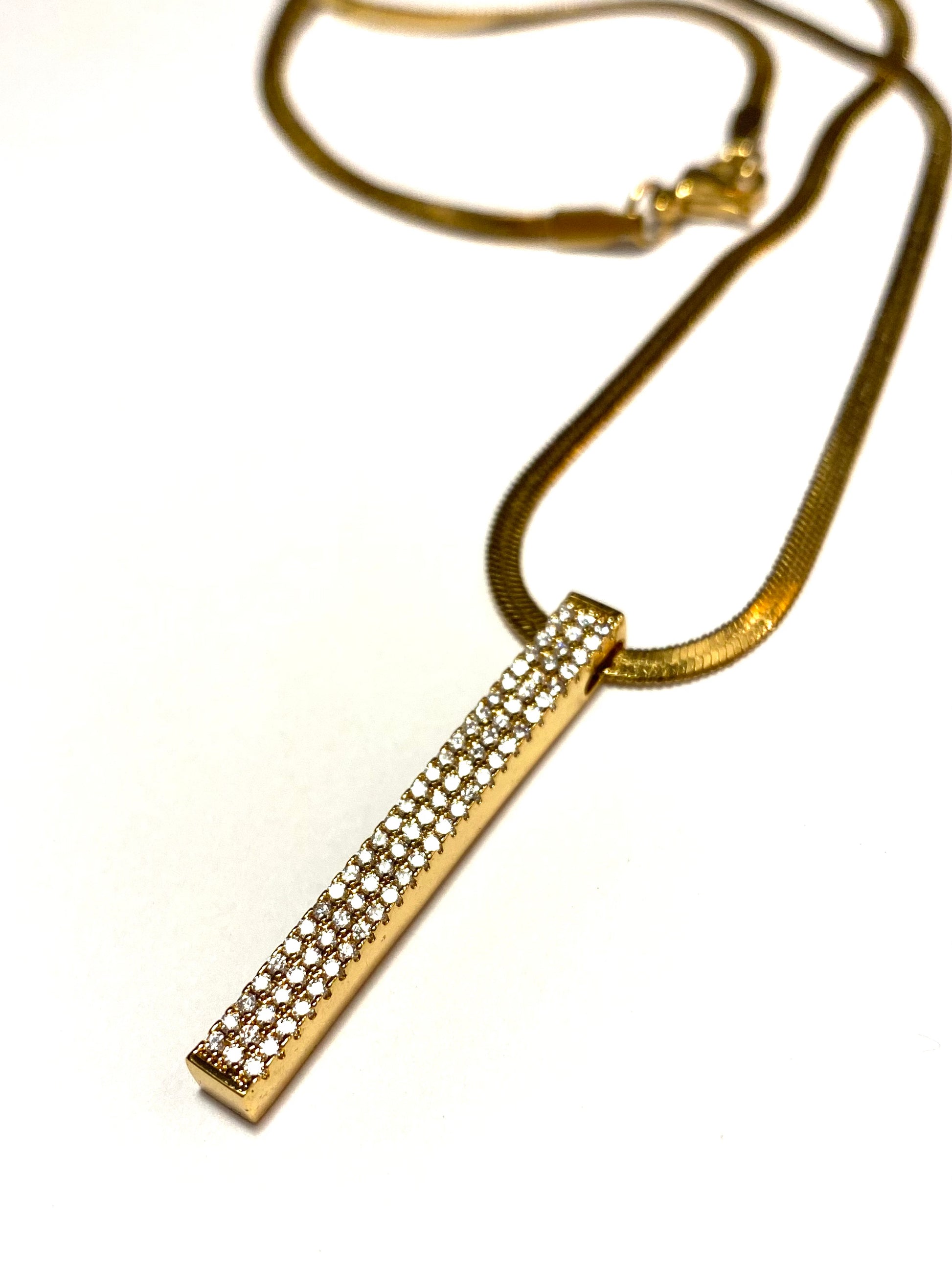Lekkert smykke med anheng. Lenke av gullfarget stål.