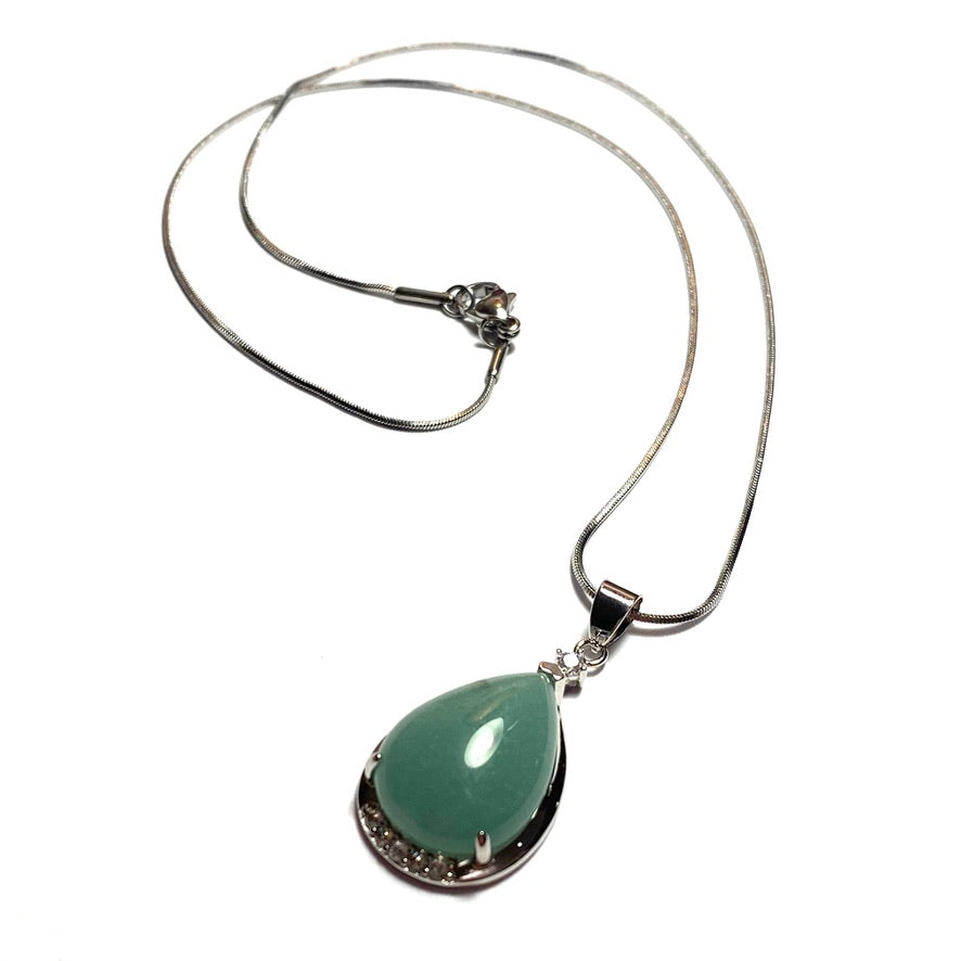 Smykke med vakkert aventurin anheng. Lenke av stål.