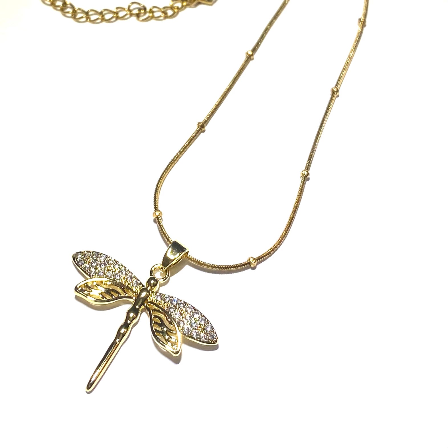 Smykke med øyenstikker. Lenke av gullfarget stål.